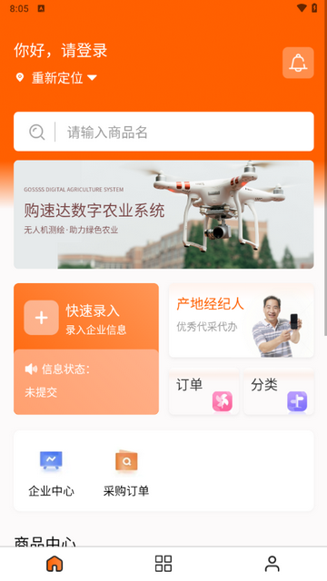 1、可以选择普通采购企业或产地中介采购两种身份,获取相应服务;