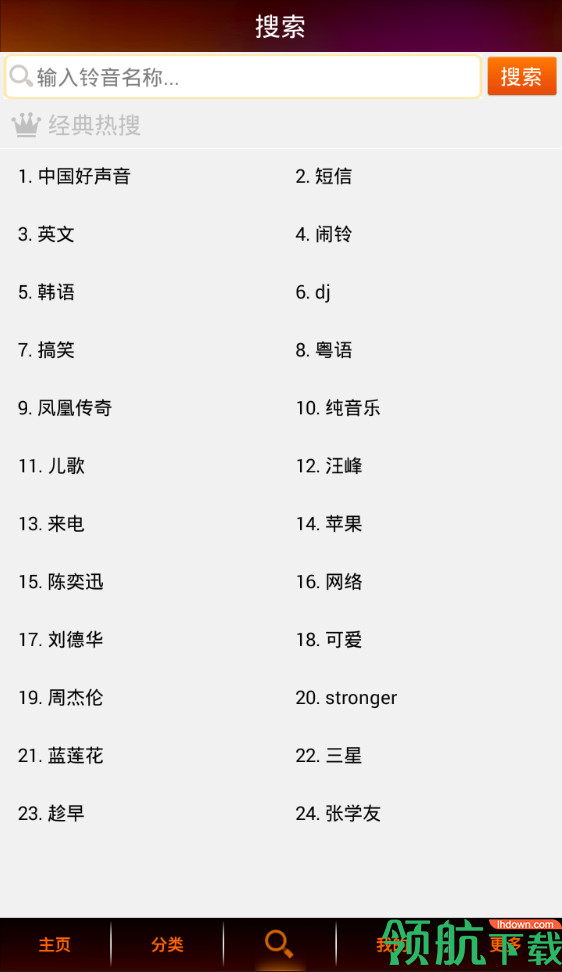 精细铃声分类,经典、原创、翻唱、恶搞、影视、动漫选你喜欢。