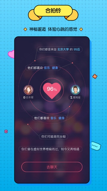 合拍铃 每晚9点,为你匹配一个合拍的TA,限时24小时聊天,新鲜又刺激。