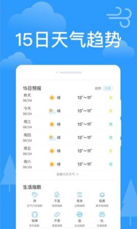 1、软件为用户提供未来15天的天气预报,让用户可以提前做好出行的准备。