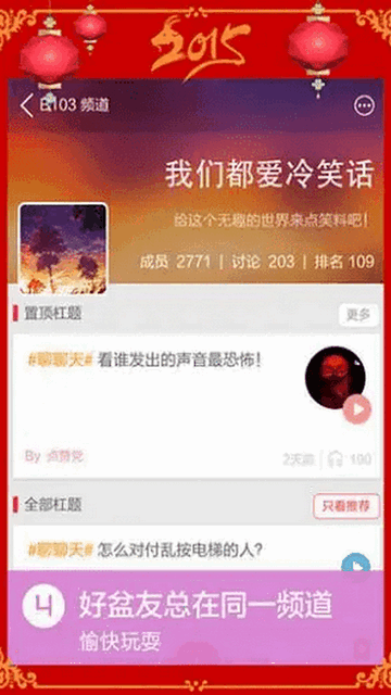 1、频道:订阅优质主播的优质电台节目,无节操段子、精选音乐、动人故事……每天听听,好享受!