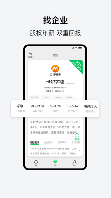 聊天交友好去处,约上你感兴趣的同道中人一起玩吧。可以及快速找搭档、找企业、找合作伙伴,更是大家的专属顾问,可以帮助你来进行一个快速的引流,获取更多的资源,让信息发布变得更加的流畅,从而来积累自己的创业人脉。