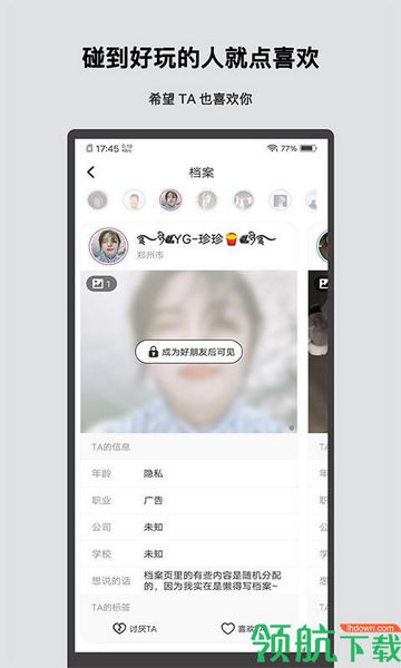 1、通过这个app用户可以每天碰到各种各样的陌生人,在线聊天社交,每日帮助你匹配9个陌生人,全世界各地好友聊起来。