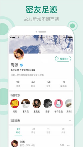用户可以在软件上面了解到全国各个大学的一些动态新闻,也可以帮助用户在软件上面交到不同学历不同区域的朋友。可以让用户通过这里,可以去找到合适的聊天交友对象,给用户推荐兴趣一致的聊天对象,让交友也是更加的轻松些。