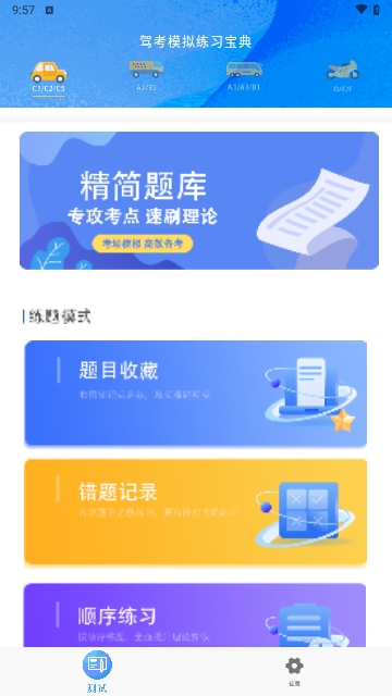 驾考理论题库考驾照APP是一款全新推出的驾考刷题练习软件,这款软件中为大家带来的相关驾考练习资源内容是非常丰富的,这里所有题目题型都是最新的,满足大家不同刷题需求,而且支持多种驾驶证的刷题练习,有需要的话快来开启下载吧!