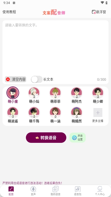 用户也可以选择喜欢的主播音色,对不同主播的声音音色都可选择,随时试听。