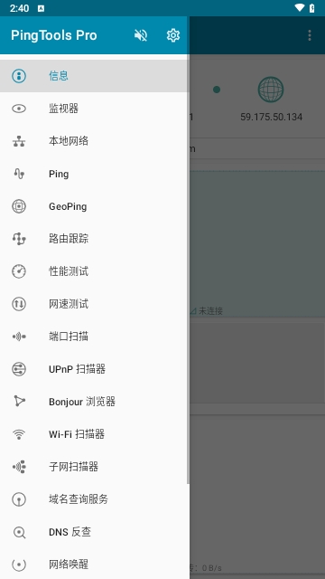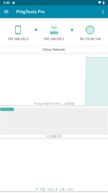 PingToolsPro是专为安卓手机用户所开发打造的一款网络检测测试工具,这款软件可以帮助大家来轻松对自己的手机网络情况进行一个详细的分析,以便于大家来对自己的WIFI网络有一个更好的了解和掌握,超多相关功能都可以使用到。