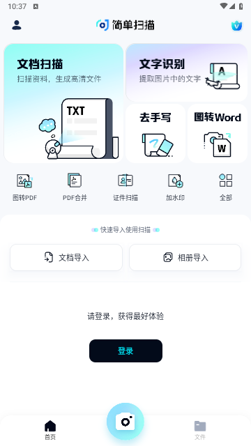 功能涵盖文件扫描、文字识别、图像处理、翻译、格式转换等功能于一体的智能扫描软件,支持用户拍照或导入文档&图片,并可生成图片、PDF、Office。