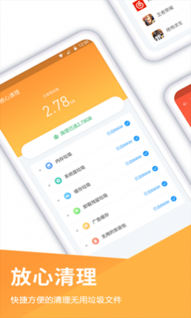 1、软件自动检测用户的手机垃圾,一键清理,保证手机的流畅性。