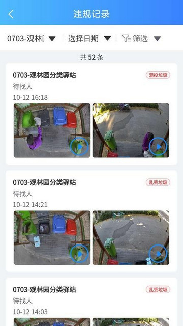 及时查看违规的视频和图片,轻松记录垃圾投放违规的数据