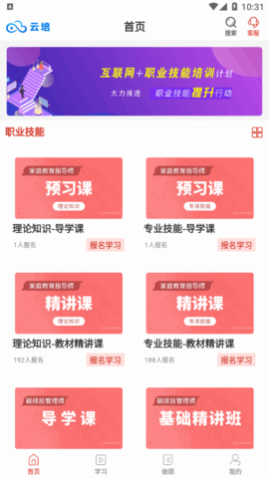 云培职业技能培训软件app是一款可以学习更多职业技能知识的软件,这里有很多专业的培训课程,大家可以在线学习,各种类型的课程都有,非常的全面,满足不同用户的学习需求,给大家带来了更多的便捷,让你轻松在线学习,轻松提升自己的专业知识水平,学习更多的职业技能。