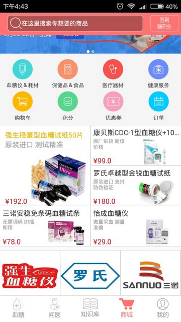 6、[在线商城]提供各类血糖仪及耗材、健康保健食品、医疗器材、线下健康服务等,打造糖尿病患者专属商城