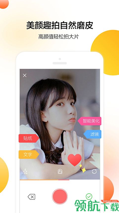 美颜,滤镜,贴纸拍出你的美,上百款滤镜、妆容、贴纸,超清的画质,百变的体验。