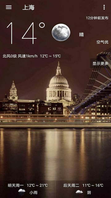 5、个极轻量、极简风格和经历了三个版本打磨的天气应用,提供精准可靠的天气信息