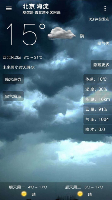 2、阴晴雨雪的城市风景,匹配实时天气状况,给您更直观的天气呈现