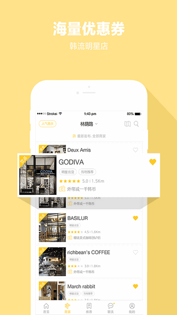 咖游韩国从10万合作商家中精选当地优质消费信息和海量优惠券