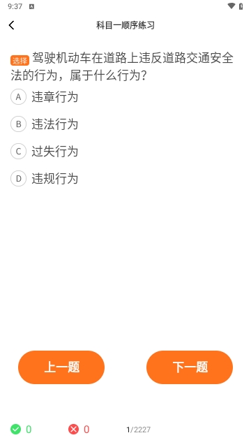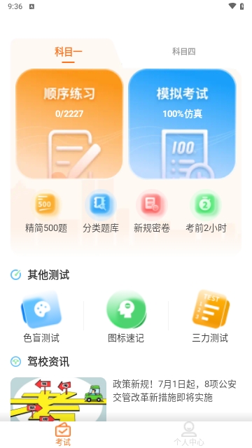 用户可以参与科目一的模拟考试,获取仿真试题进行考试答题。