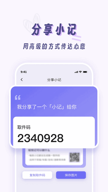 2、生成取件码:创建的小记可以快速生成取件码,轻松分享给他人。
