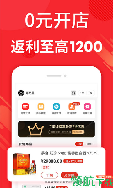 0元开店,用户可以通过分享商品吸引客户购买由此实现开店赚钱