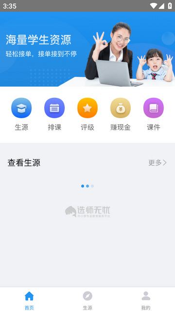 选师无忧是一款可以选择老师的软件,帮助用户找到优质的老师进行服务,更好的解决你的学习问题,让你在平台里能够获得更多的帮助,满足用户的使用需求,让用户可以更好的学习;所有的家教全部展示在平台里,用户在使用的时候,能够通过平台更好的展示自己的教育水平。