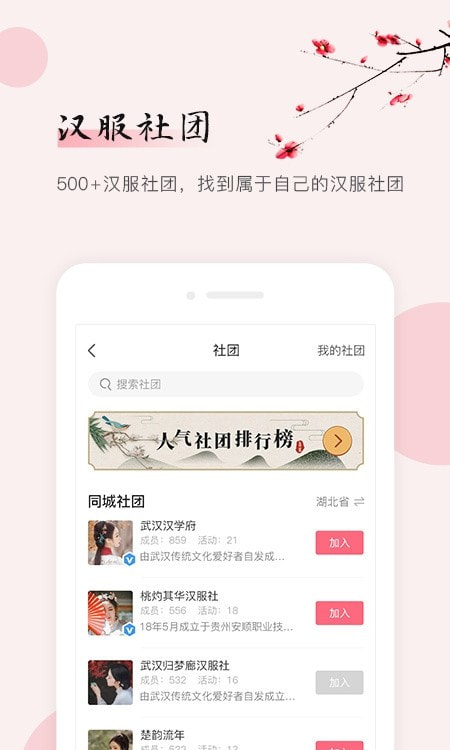 社团:创建或者参与社团,找到属于自己的汉服社区