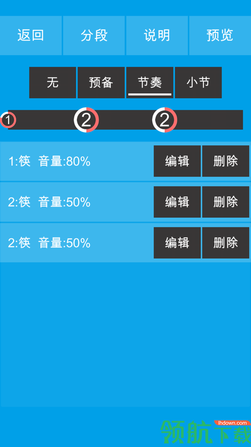乐器节拍器是一款旨在实现专业灵活的定制化节奏打拍的应用软件。使用强大的节奏和过程编辑器,可以实现灵活多样的定制打拍任务。使用录制音频功能,根据过程文件生成音频文件,生成的音频可以脱离播放界面实现后台播放。