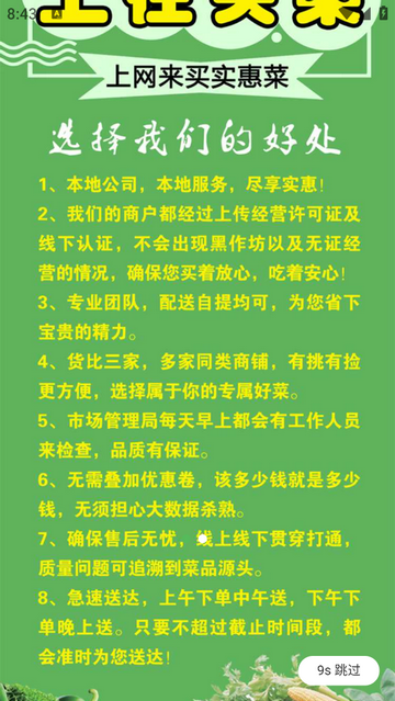 3、新鲜食材:所有商品保证新鲜送达,让您享受高品质食材。