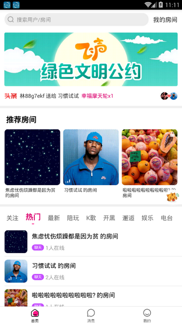 飞声语音聊天是一款手机语音聊天软件,用户可以在平台上一键语音聊天交友,和游戏大神一起开黑畅玩,让大神带你飞,还有专属的情感电台可以收听,让你更加了解自己,更好的管理自己的感情,更好的做自己,还能与同城的的好友一起玩耍,一起开黑,用你的声音演戏,扮演另一个人,让你在无聊的生活中可以有更多的乐趣。