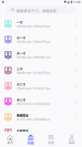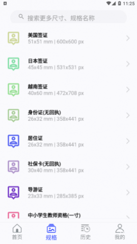 4、提供的证件照尺寸规格非常的多,您可以根据自己的需求快速的进行制作。