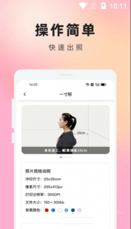 3、可以轻松的制作出各种证件照,并且在手机上直接操作,无需专门的PS,轻松的为用户制作出美美的证件照。