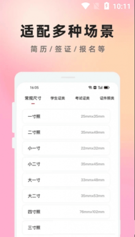 1、是一款非常好用的手机证件照制作工具,不管是什么尺寸,都能一键在线制作,满足你的多样需求。