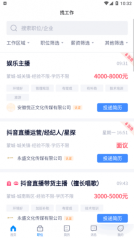 3、支持快速筛选职位,根据条件筛选简历,可以直接投递简历。