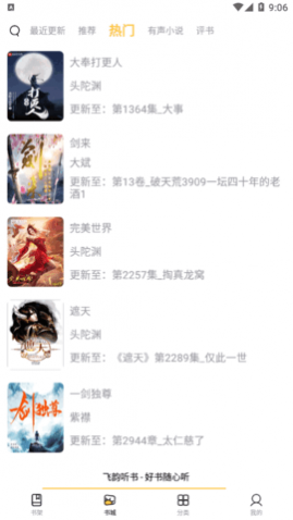 飞韵听书永久免费版是一款最新的小说阅读神器,这里可以看到很多不同类型的小说,不同的阅读模式可以自由的切换,同时还有很多不同的类型可以自由的选择,你可以选择一些优质的小说来阅读,阅读的体验也是很不错的。快快去下载吧。