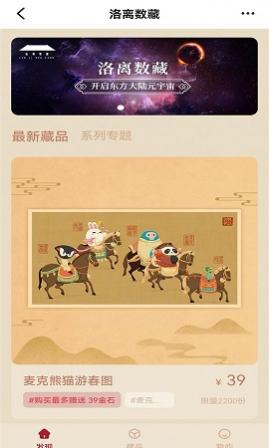 洛离数藏2024最新版本是一款专业的数字藏品交易软件,平台上面有着各种各样的藏品,满足不同用户的交易需求,海量的藏品在这里任你选择,满足不同用户的收藏需求,随时随地在线收藏自己喜欢的艺术品,是大家收藏必备的神器,给大家带来了更多的优质服务,随时随地在线收藏交易。