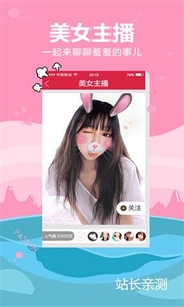【智能美颜】全自动美颜功能,直播时更自然更有吸引力; 【实时互动】拒绝延迟,拥有流畅的直播互动效果; 【高清赏析】拒绝马赛克,还原主播真实美貌;