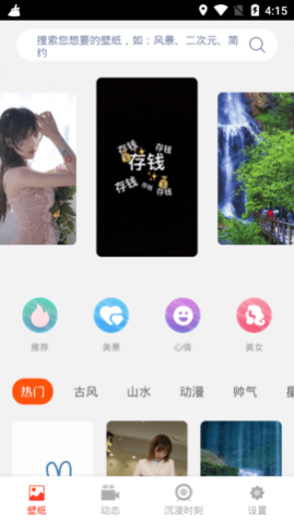 1、分类丰富,风景、情感、美女、创意、明星、创意等多种类型的壁纸。