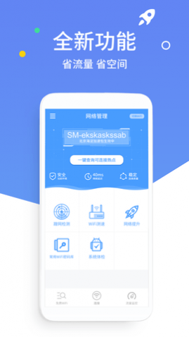 1、一键测速:查看手机上网速度,无论是手机上网速度还是正在运行的软件,一键帮您测试。