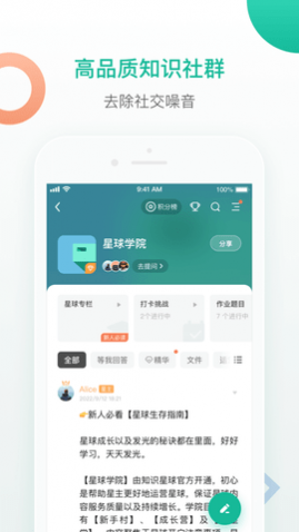 知识星球安卓最新版2024是一款全新推出的知识软件,不仅可以自由创作,还能在线认识更多的朋友,提供多种不同的话题,随时都可以进行互动,软件内还有各种不同的功能,让大家的各种学习问题都可以得到解决,同时还有大量的资源可以学习,每天还可以在这里进行交友,了解更多的学习资源。