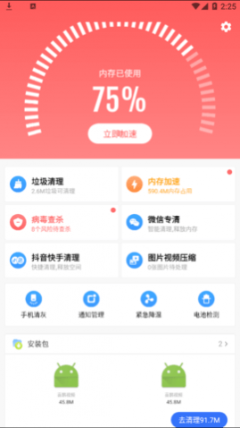 2、对手机进行专项清理,让用户的手机运行更加流畅。