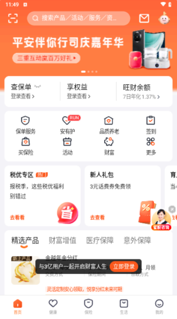 平安金管家app下载最新版本2025是款正规且靠谱的金融理财软件,其内置有完善的保单服务,能够在线办理信用卡、在线开户等等操作。而且平台上还有超多热销的理财产品,超多的小伙伴都在这里通过自己的理解挑选理财,如果你也想要加入我们,那就快来下载试试吧!