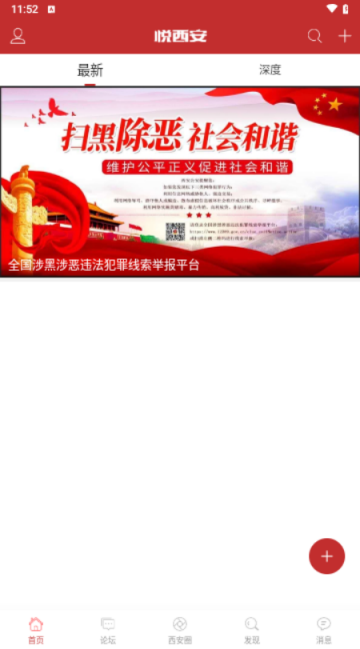 1、首先在手机上打开悦西安app,如下图所示,有最新消息与精选;