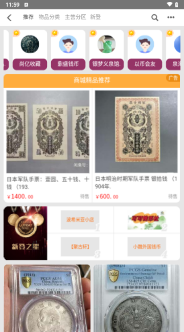 1、硬币商城有丰富的硬币和不同时代的硬币。