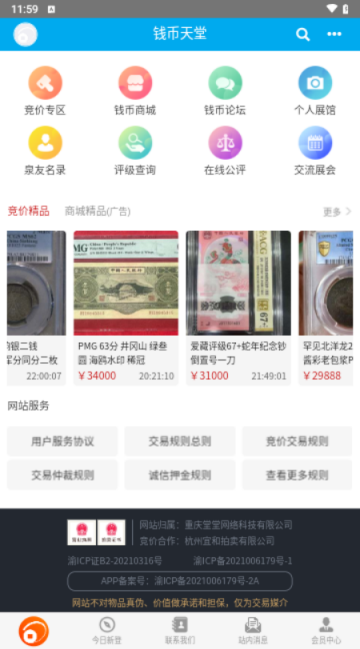 1、注册成会员,进入钱币天堂,直接从左上角钱币天堂网址下方