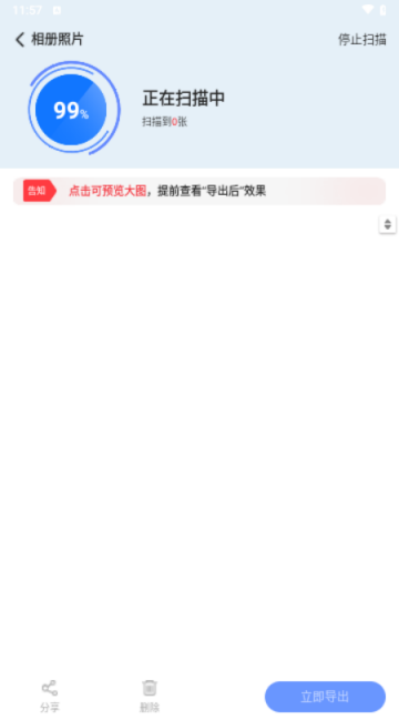 ①打开APP,点击使用【照片查找】或【照片扫描】功能,软件能扫描出来的照片即代表该照片是可以找回并导出,如扫描出来没有您需要的照片,说明该照片不能被查找出(找回)!