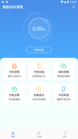 智能内存清理手机版是一款非常实用的手机垃圾清理软件,软件中可以帮助用户对手机的内存进行全方面的扫描清理,各种隐藏的垃圾也可以快速的进行扫描清理,并且用户还可以根据自己的需求来对文件进行扫描,让手机的空间更大,有需要的话就来下载体验吧。