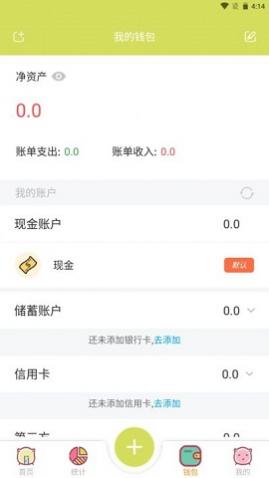 1、在这里,用户能够随时进行记账,能够轻松的记录自己的每一笔账单。