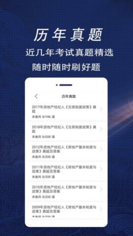 房地产经纪人全题库免费版是一款专门为房地产经纪人设计的学习软件,有各种各样的学习资源,用户可以在里面自由选择,可以帮助用户快速提高自己的学习成绩,轻松掌握考试内容,轻松通过考试。有兴趣的话下载学习。