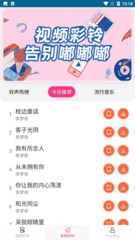 精选彩铃大全最新版是一款非常不错的手机彩铃制作软件,有了它,你可以制作自己喜欢的彩铃,铃声种类非常齐全,一键即可快速设置成功,每天更新大量铃声,你也可以自己制作铃声,非常好用,这里的铃声分类也很详细,可以快速找到自己喜欢的铃声,非常方便,感兴趣的朋友快来下载吧。