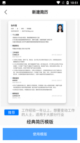 3、快速的提交自己的简历内容,让你拥有更多的简历模板可以使用。