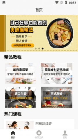 3、点击首页,为用户提供了大量的美食教学视频。